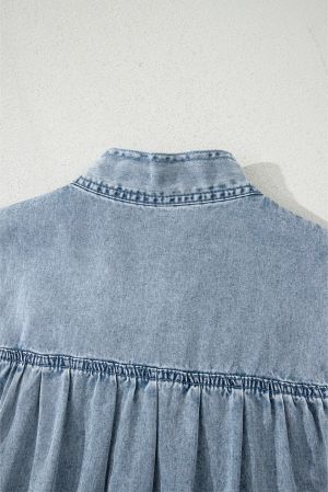 - Lightweight sleeveless chambray dress made of 100% cotton, featuring a flowy A-line silhouette, playful ruffled hem, and a charming bow tie at the collar.