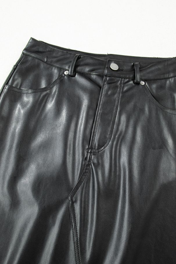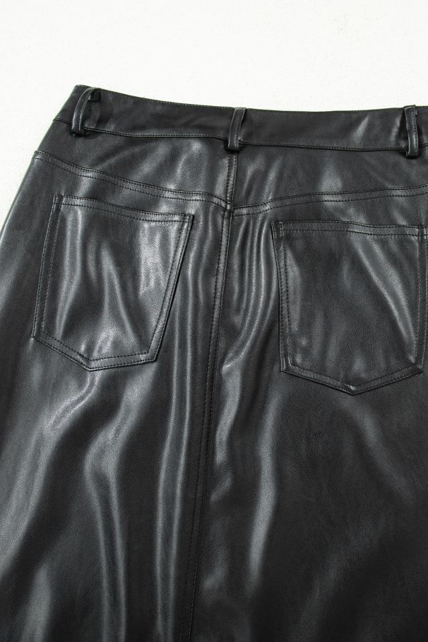 Women’s Black Faux Leather Maxi Skirt with Side Slit