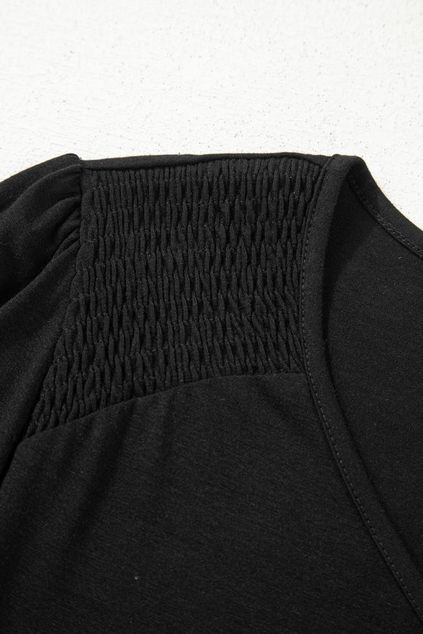 - Designed with a flattering V-neckline, gathered shoulders, and elastic cuffs for a feminine touch.