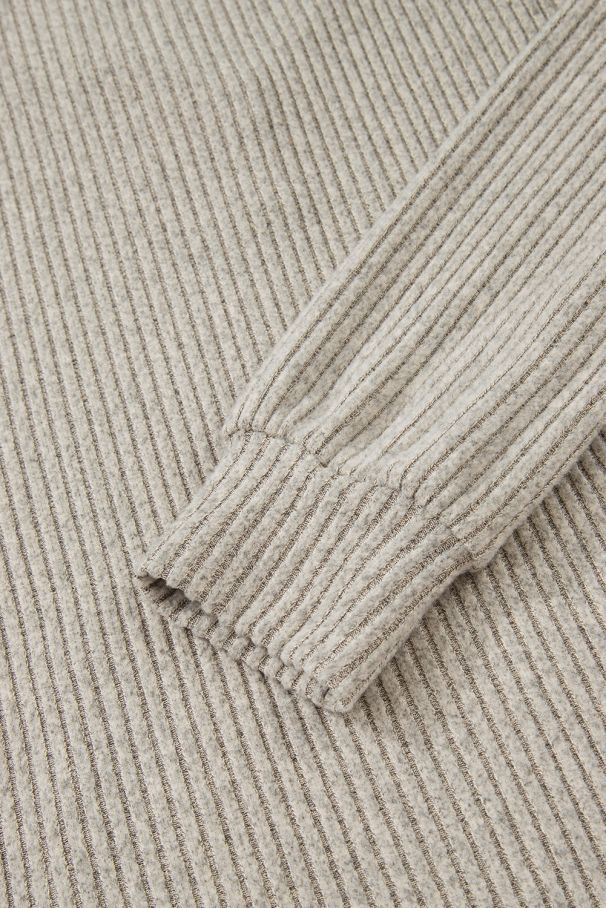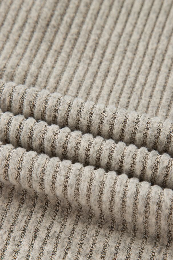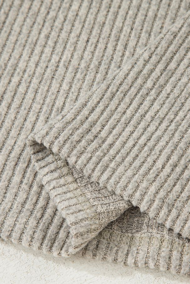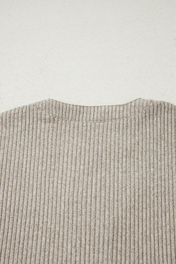 - Soft and cozy beige ribbed top with a Henley neckline and button detail.