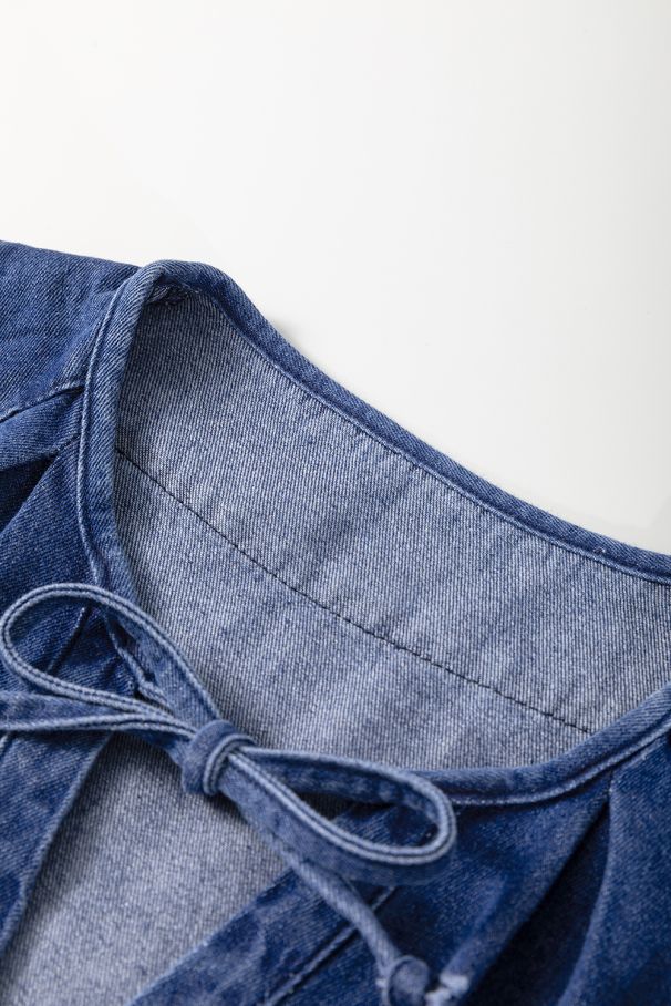 - Denim Puff Sleeve Drawstring High Waist Mini Dress exudes timeless style.