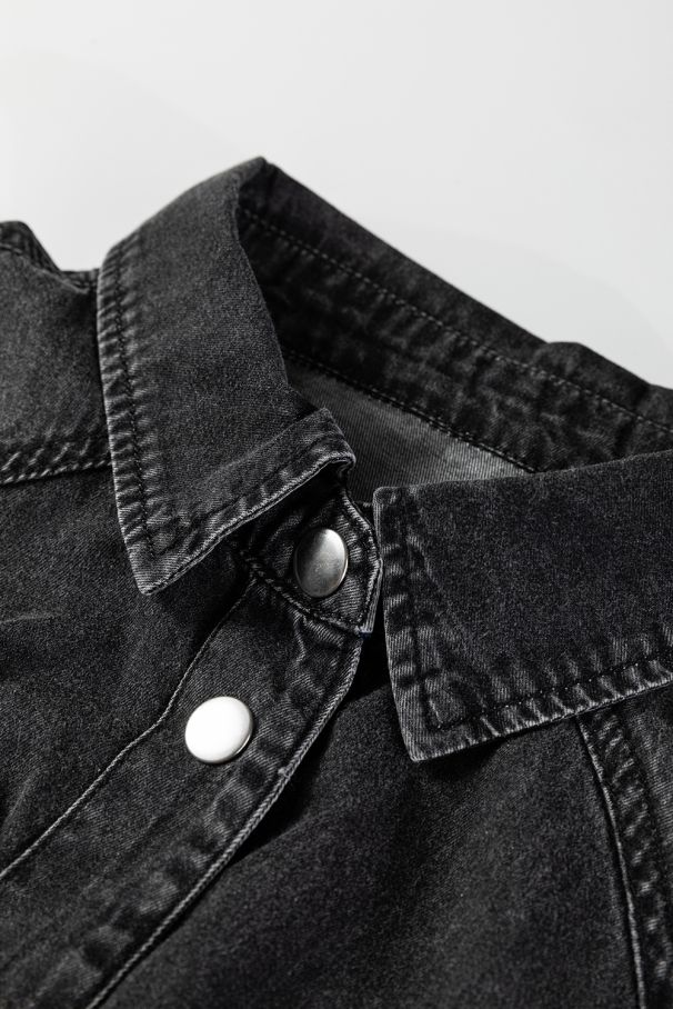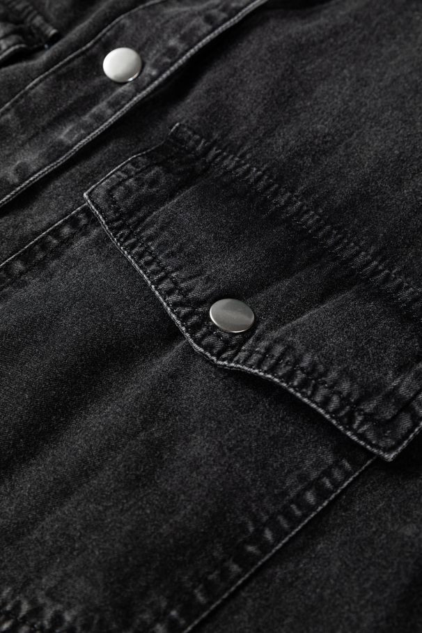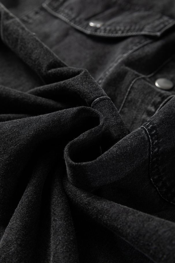 • Chic medium grey denim shirt dress made from 100% soft cotton.