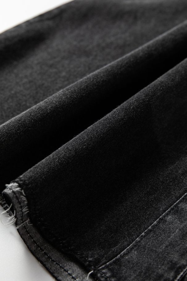 • The curved hem with a raw edge adds a trendy touch.