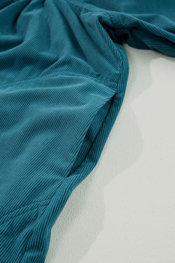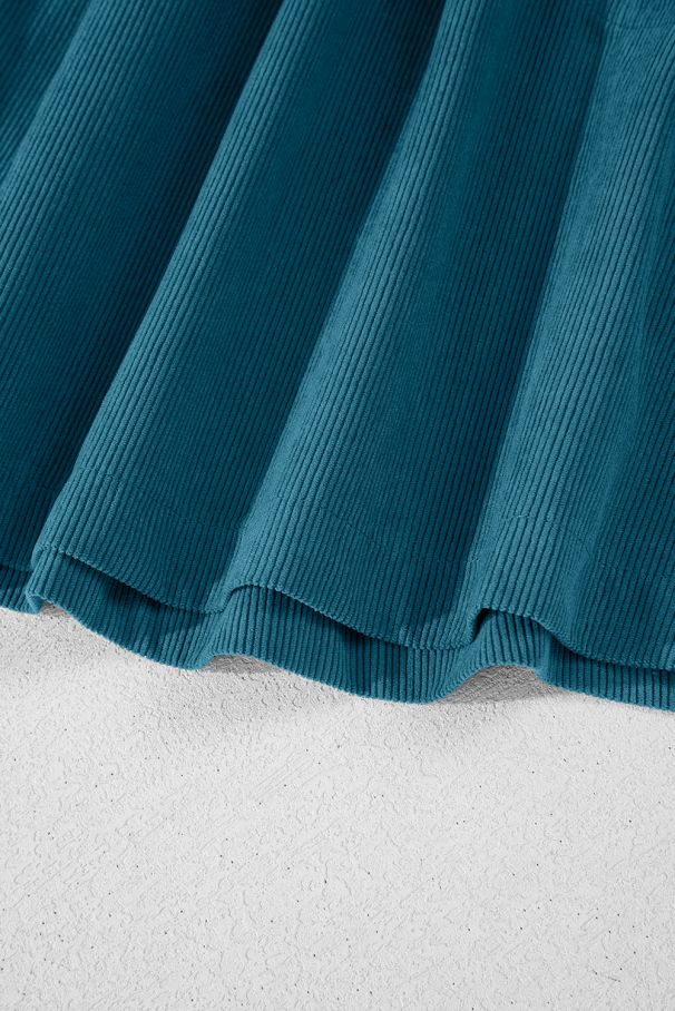 Women’s Blue Corduroy Dress with Puff Sleeves and Button Detail
