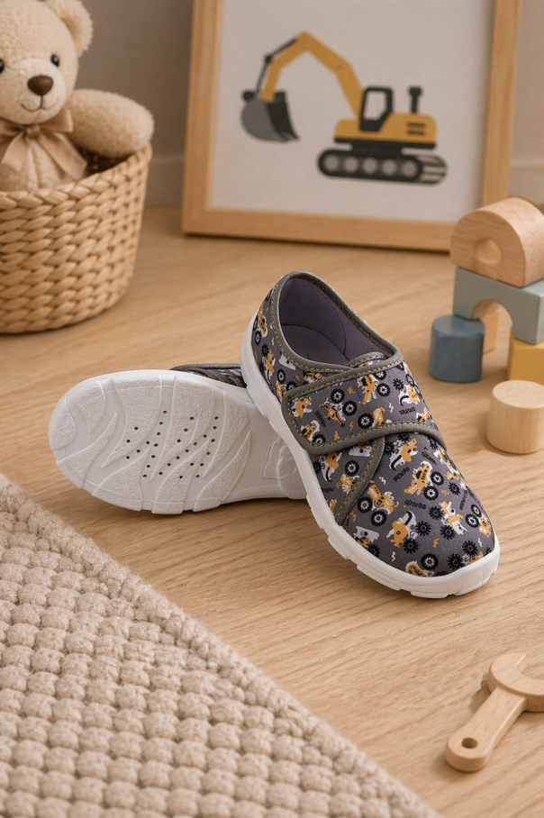 Befado Boys Slippers Grey Print - Lightweight Breathable Kindergarten Shoes