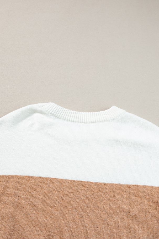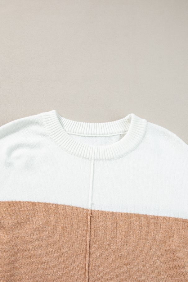 Home Clothing Women’s Beige and White Soft Knit Sweater with Minimal Design