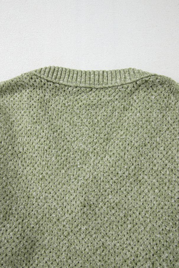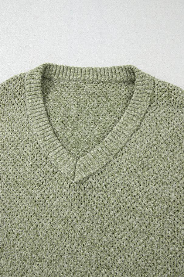 - A lightweight and cozy sweater featuring a delicate open-knit texture and a flattering V-neckline.