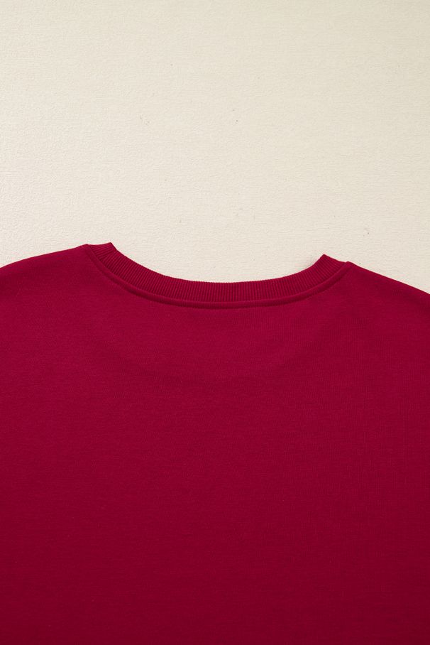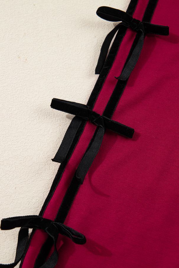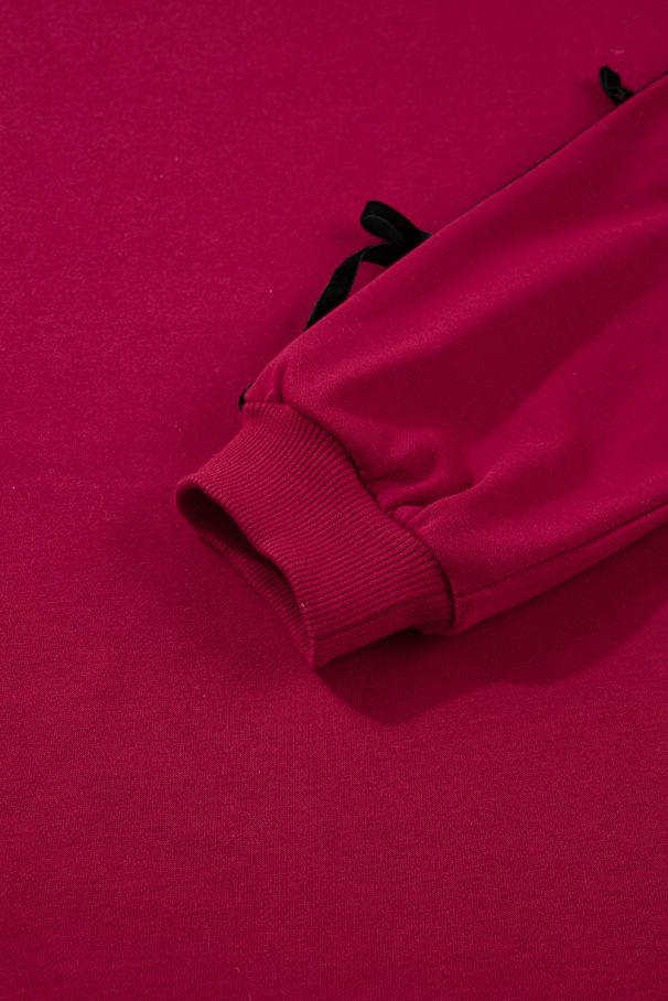 Women’s Burgundy Sweatshirt Dress with Pockets and Velvet Ribbon Sleeve Details