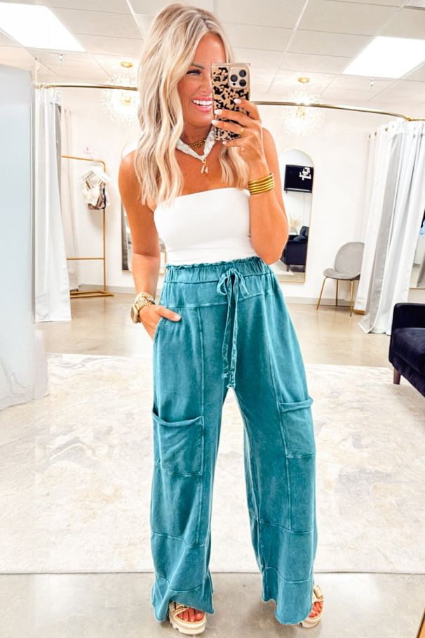 Women’s 100% Cotton Wide-Leg Turquoise Pants