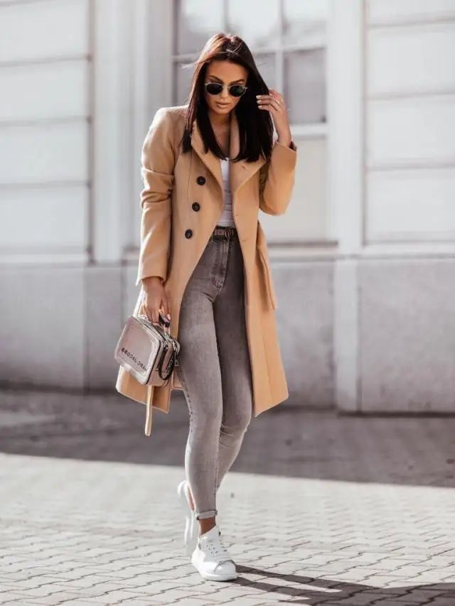 Home Clothing Women’s Elegant Beige Coat with Classic Cut
