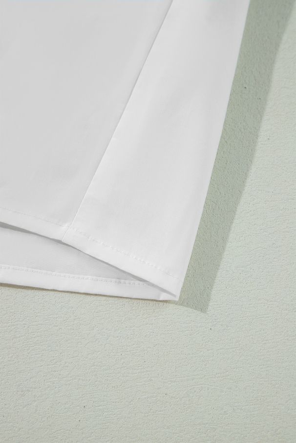 - The contrast pipping design on this white shirt creates a color block visual look.