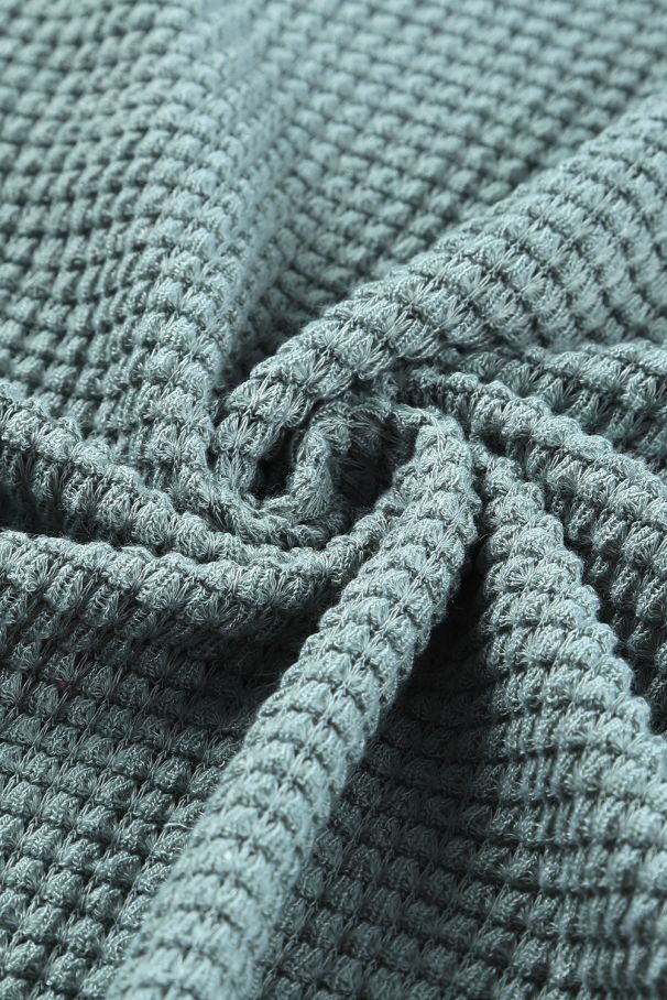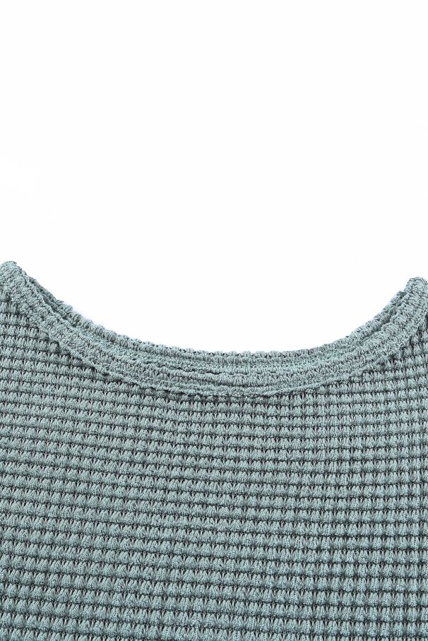 - Women’s green long sleeve blouse made of soft waffle knit fabric.