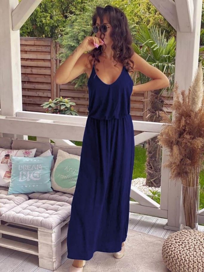 - Дълга лятна рокля в тъмносиньо.