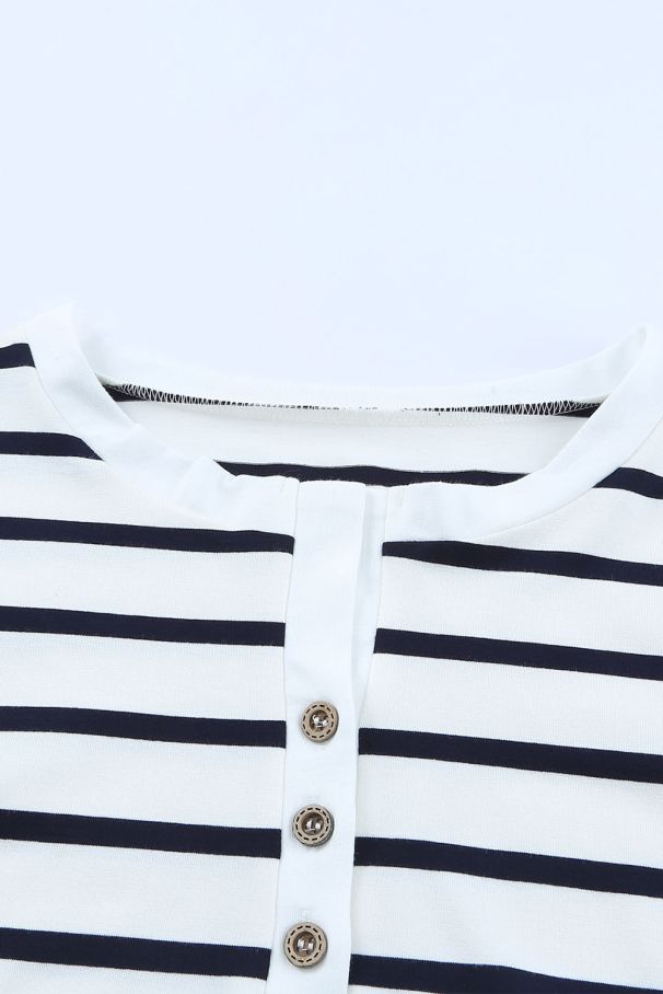 Дамска блуза на райе с дълъг ръкав и деколте тип хенли