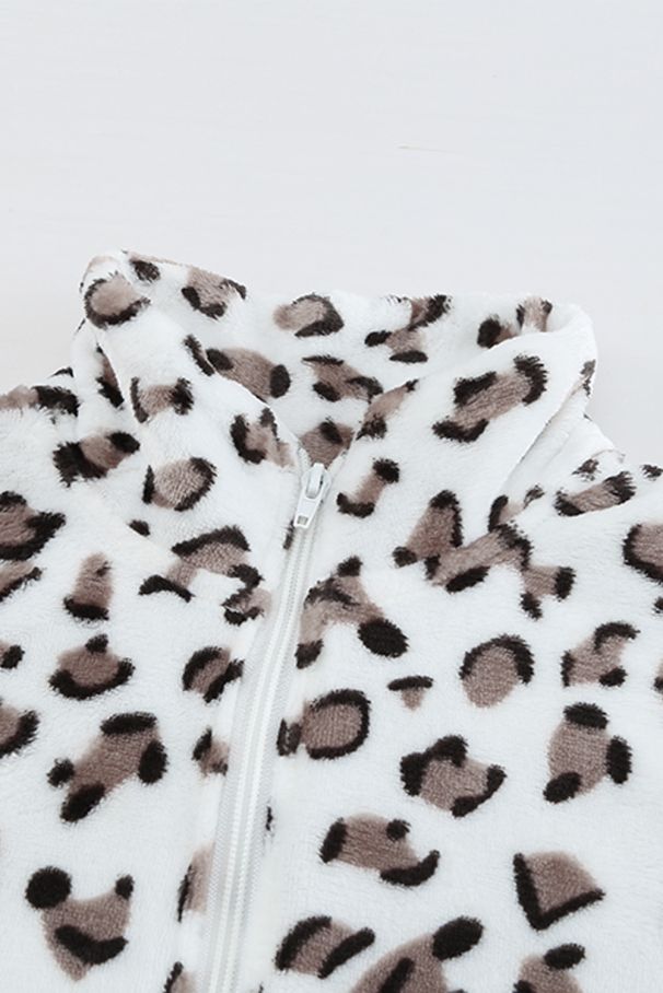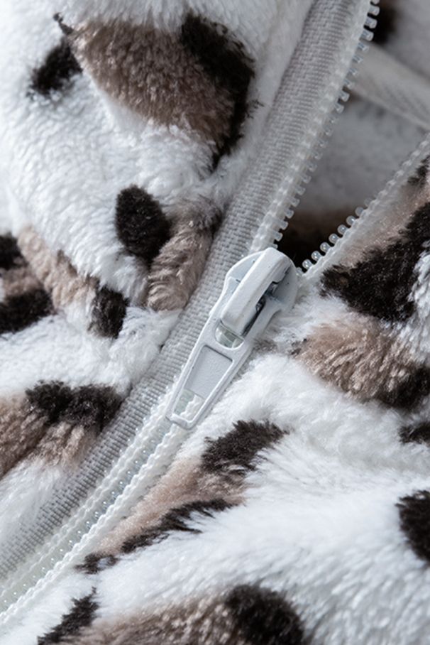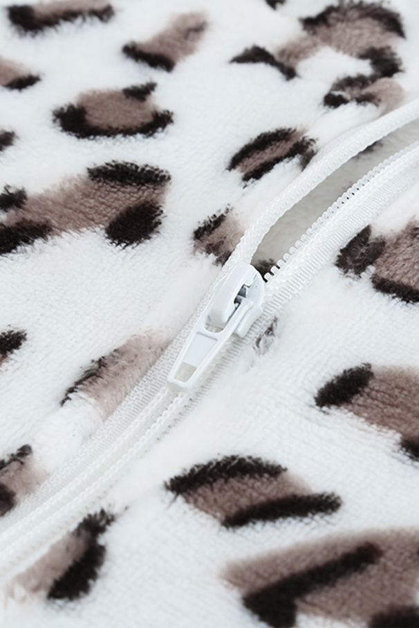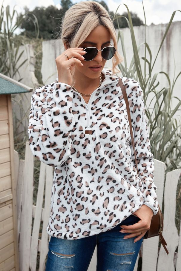 Начало Всички дрехи Дамска пухкава блуза с цип и леопардов принт