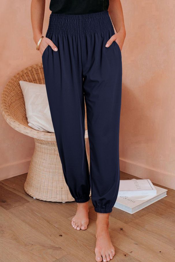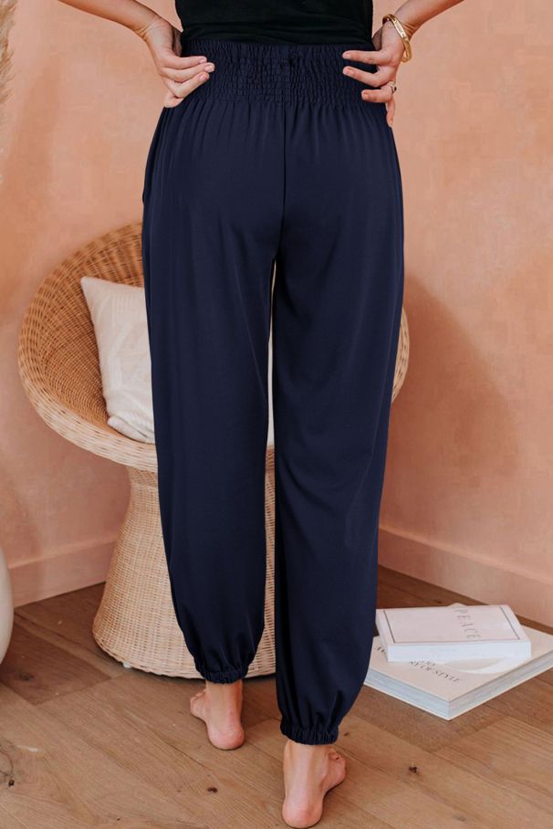 Дамски тъмносин панталон тип джогър с висока ластична талия