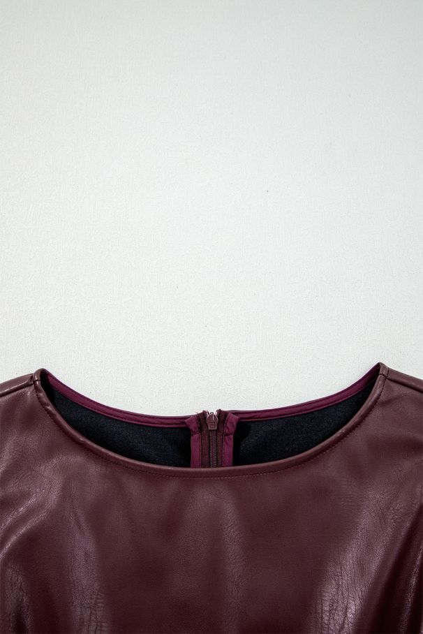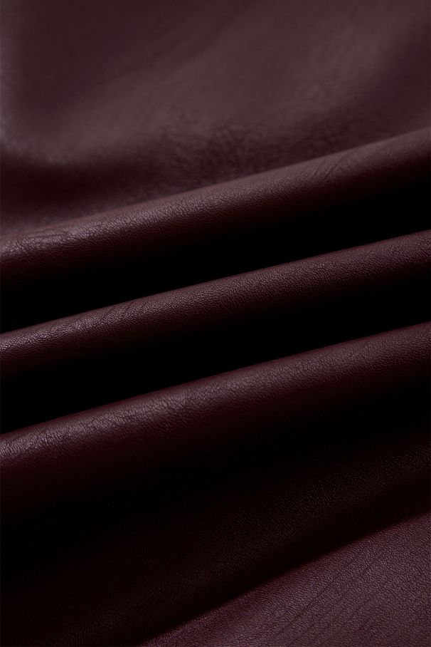 - Модерна и дръзка дамска рокля от еко кожа в актуален тъмен нюанс бордо.
