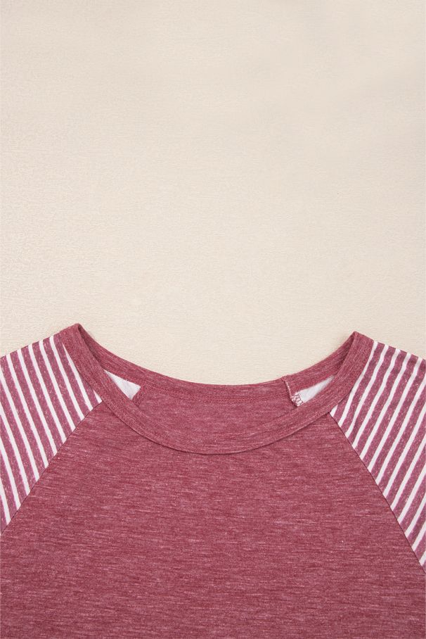 - Стилна и удобна дамска блуза с райета по ръкавите и красив дантелен акцент в долната им част.