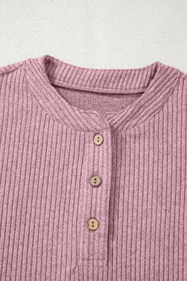 Дамска розова блуза с деколте тип хенли и преден джоб