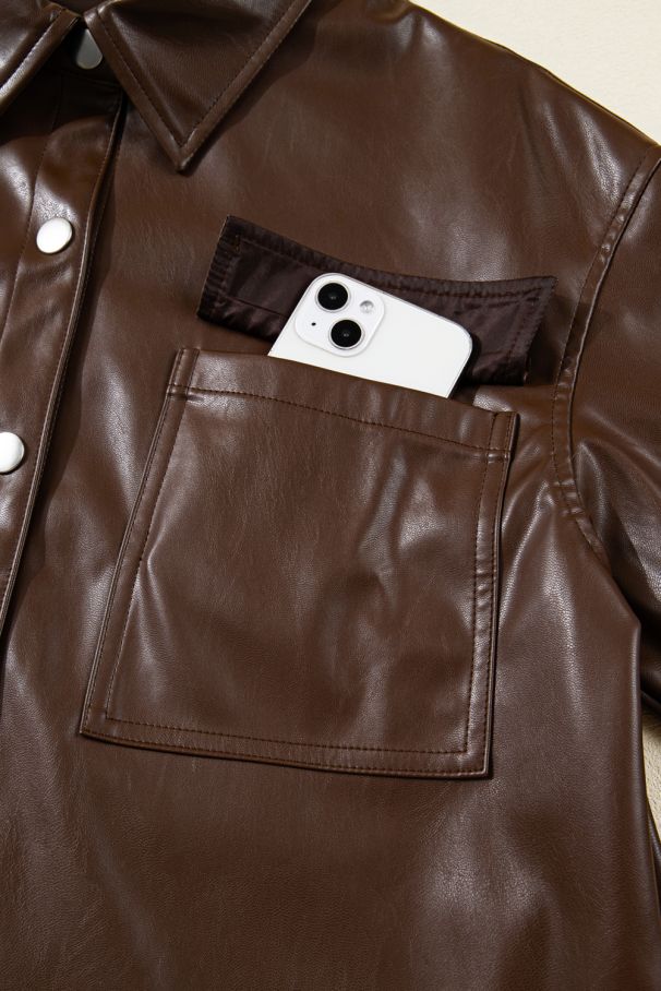 - Модерно дамско яке от мека еко кожа в стилен кафяв нюанс.