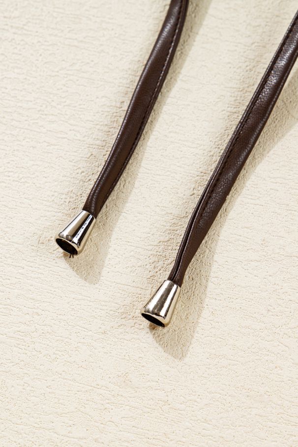 Дамско кафяво яке от еко кожа с копчета и връзки при подгъва