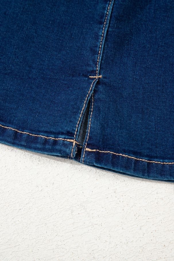- Тази дънкова рокля по тялото е перфектният избор за модерна, уверена визия.