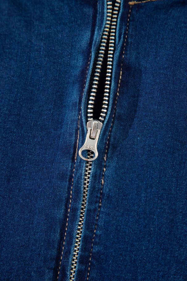 Дамска къса дънкова рокля в синьо без ръкави, с цип