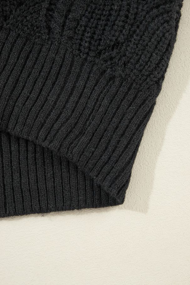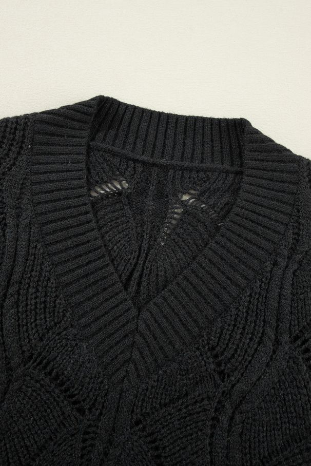 Начало Всички дрехи Дамски черен пуловер с V-образно деколте