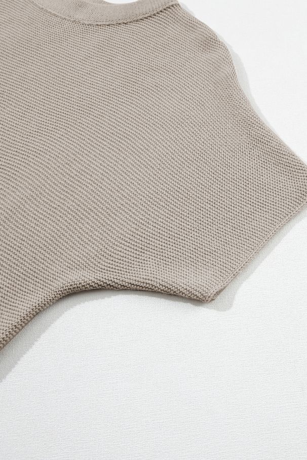 Дамски бежов пуловер с къси ръкави тип прилеп и висока яка