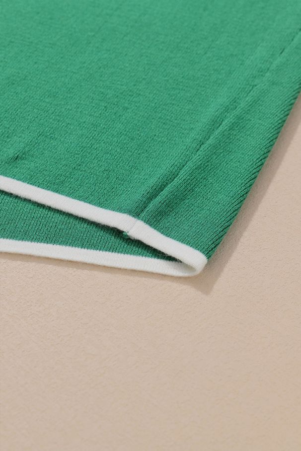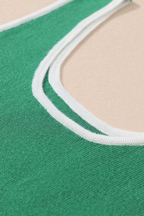 Дамски зелен еластичен потник с контрастни бели кантове
