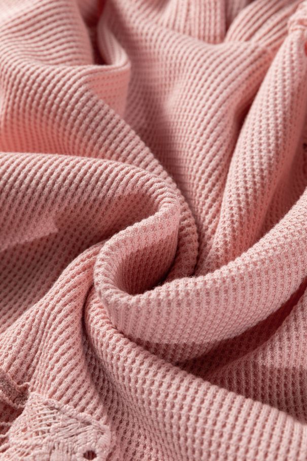 - Нежен розов суичър с качулка, изработен от мека материя и акцент от флорална дантела по ръкавите и джоба.
