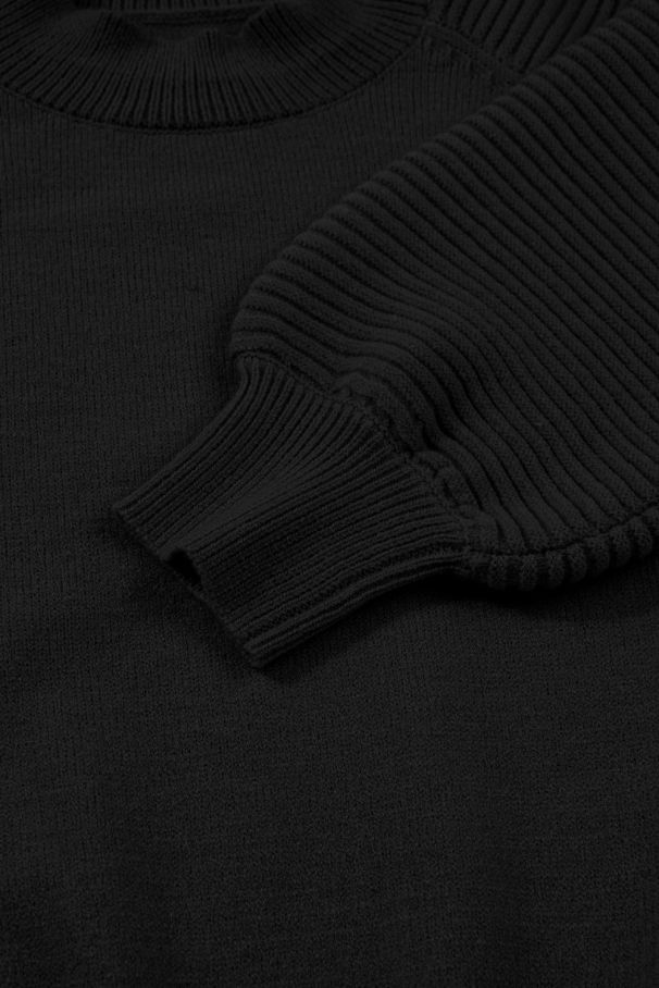 - Стилен черен плетен комплект, който съчетава удобство и елегантност в един завършен тоалет.