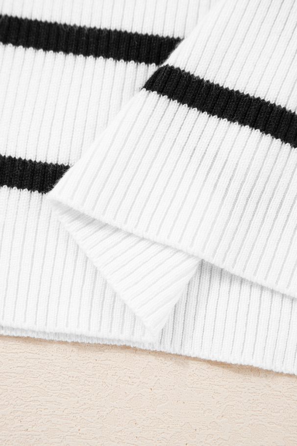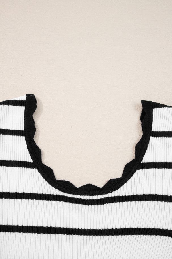 • Раирана блуза в бяло и черно с фино вълнообразно деколте.
