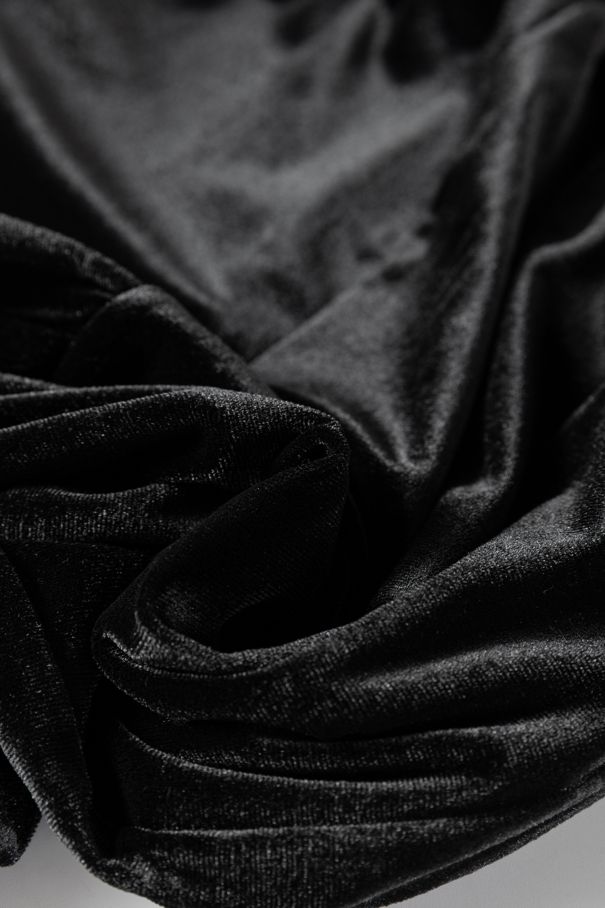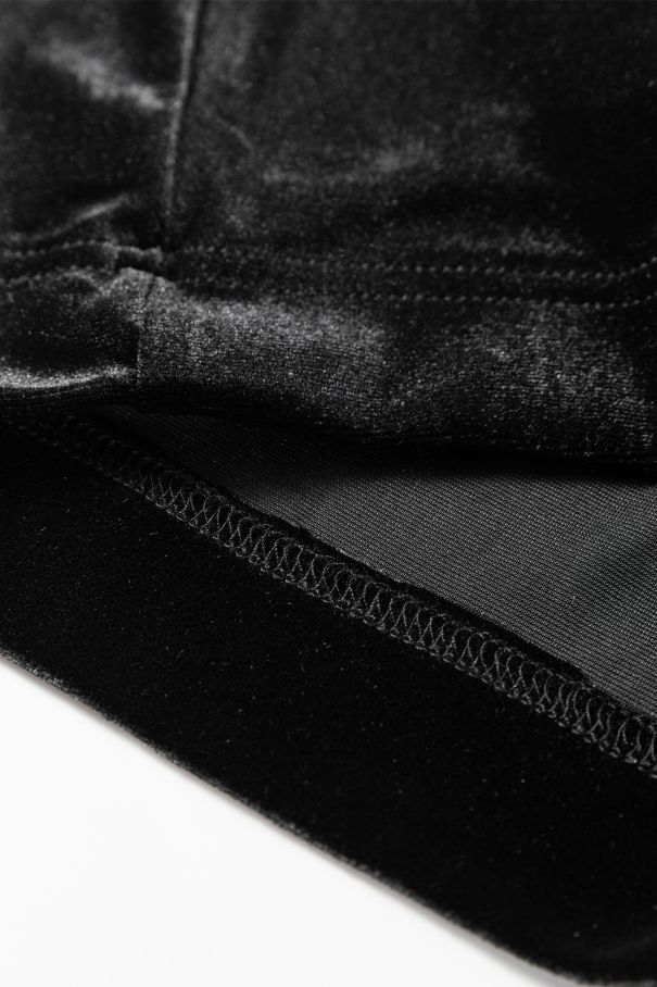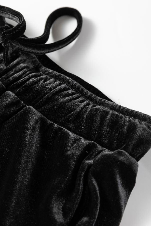 Дамски бляскав кадифен панталон в черно с връзки при талията