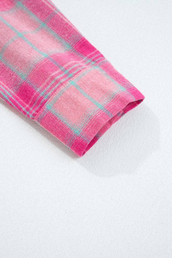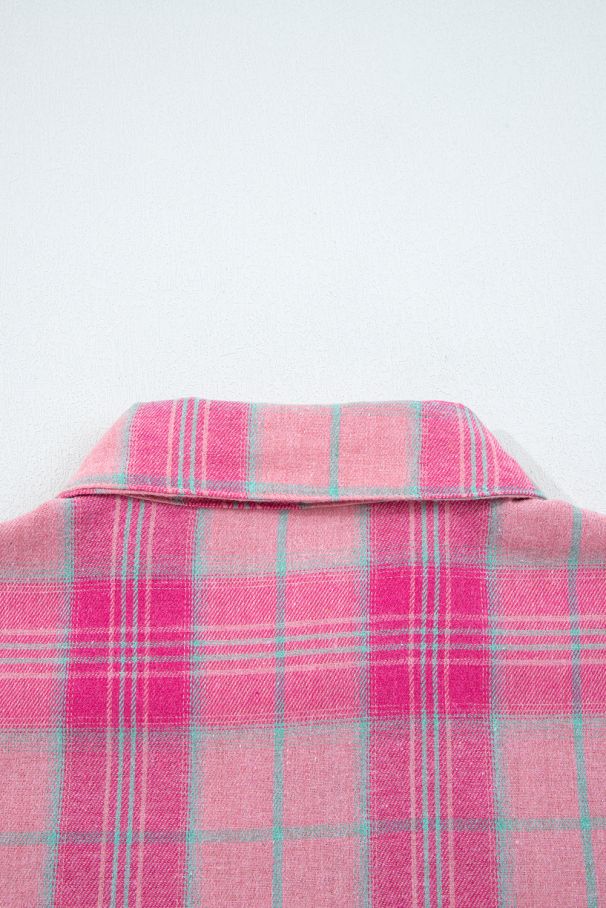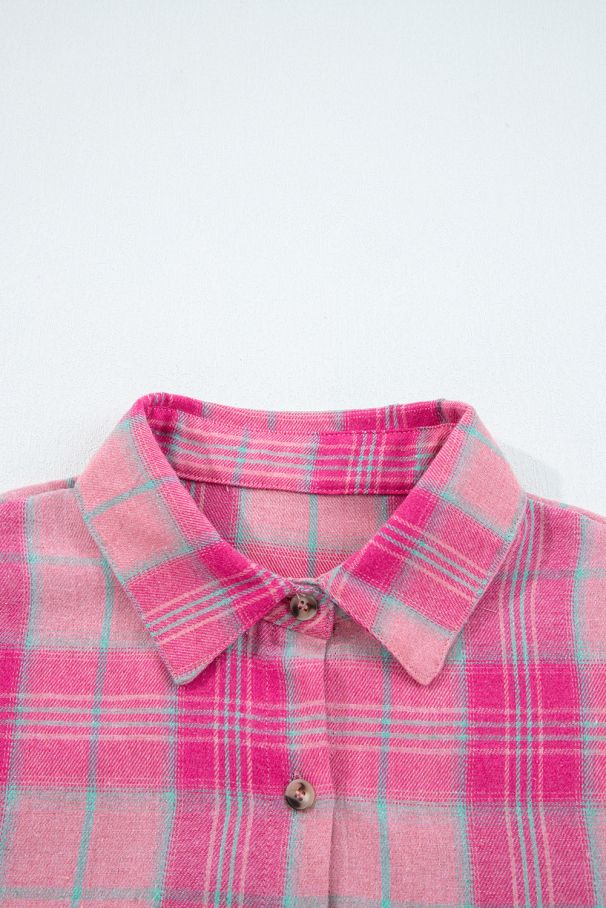 • Дамска риза в свеж розов цвят с каре, изработена от мека и приятна материя.
